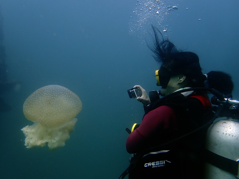 此次潜水最难忘的是冷,7月中海南岛的海水温度只有22°C,有点不可思议的冷。