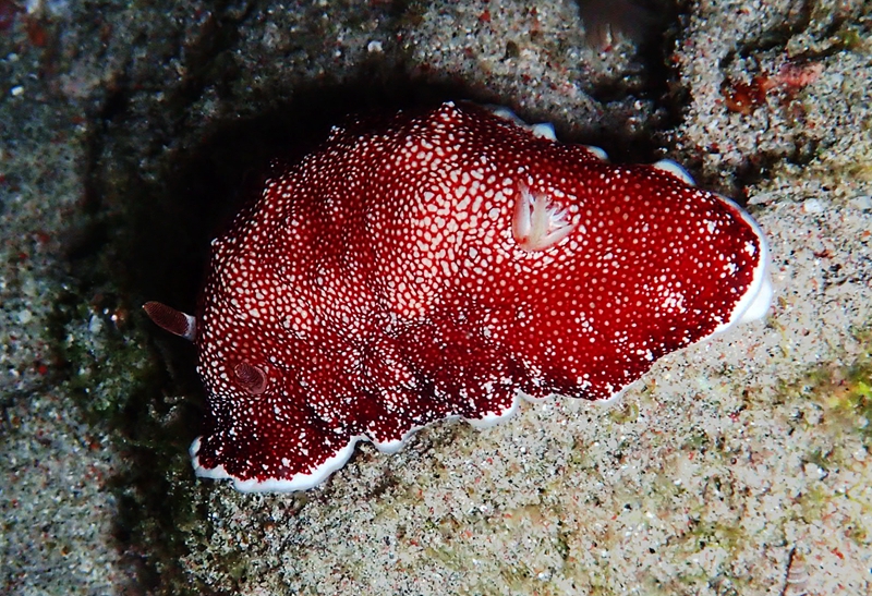 中文名:细沙多彩海蛞蝓、红枣海兔、红枣彩兔、红枣龚兔